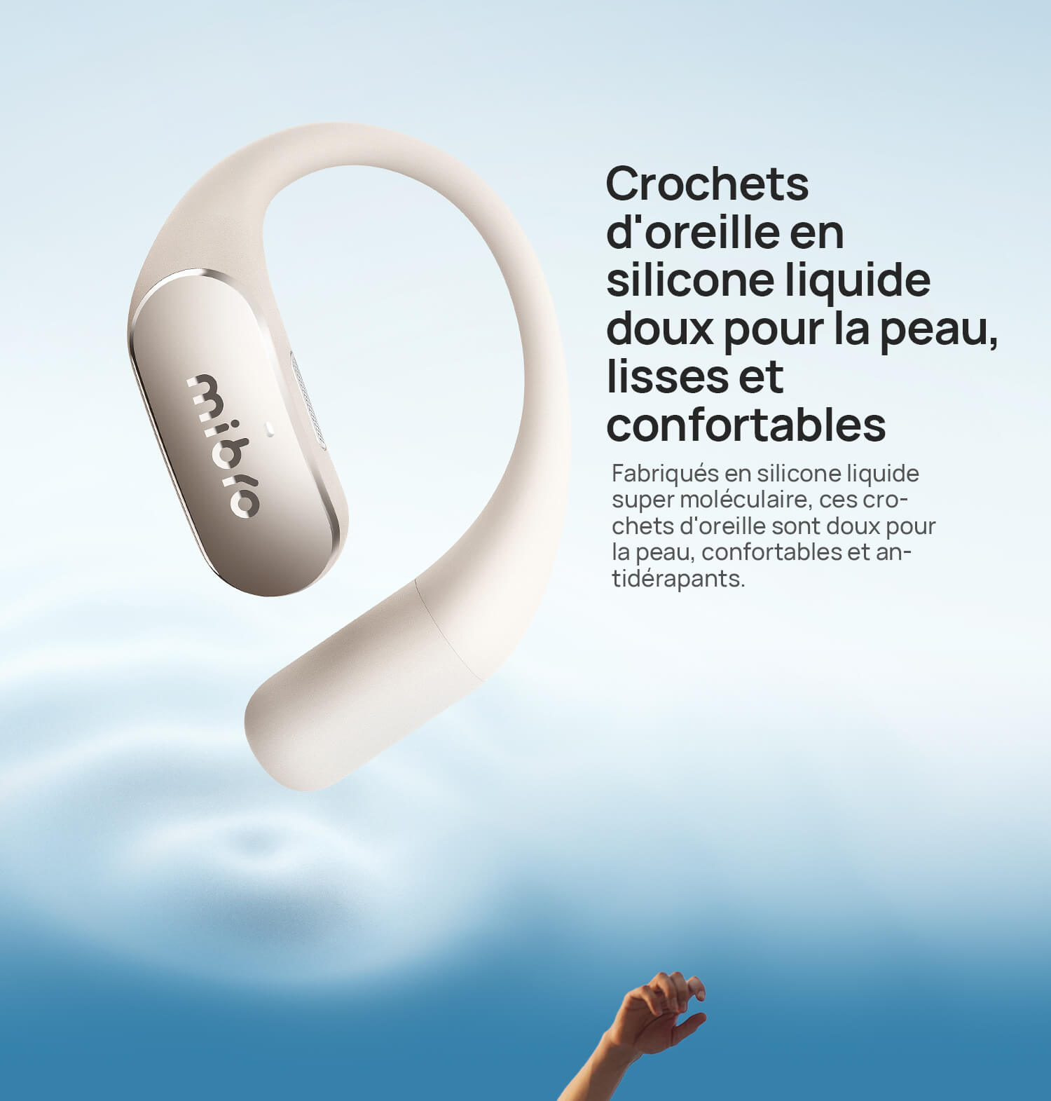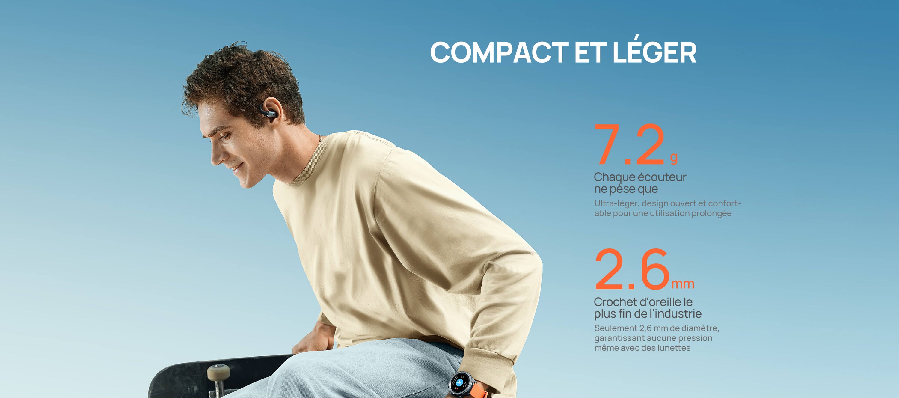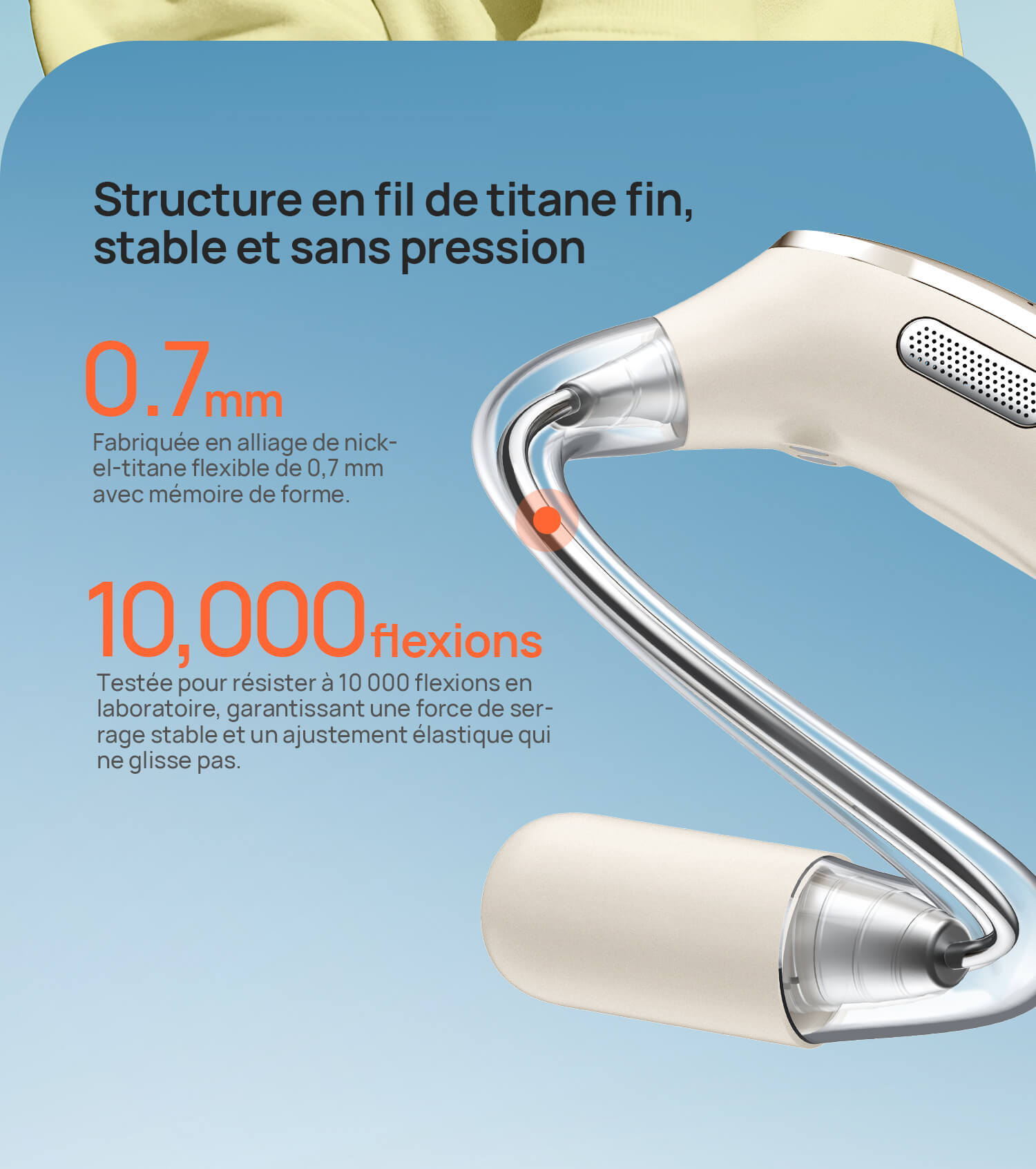 Seulement 7,2g avec structure ouverte sans pression. Crochets en titane fin et silicone moléculaire, hypoallergéniques et antidérapants.