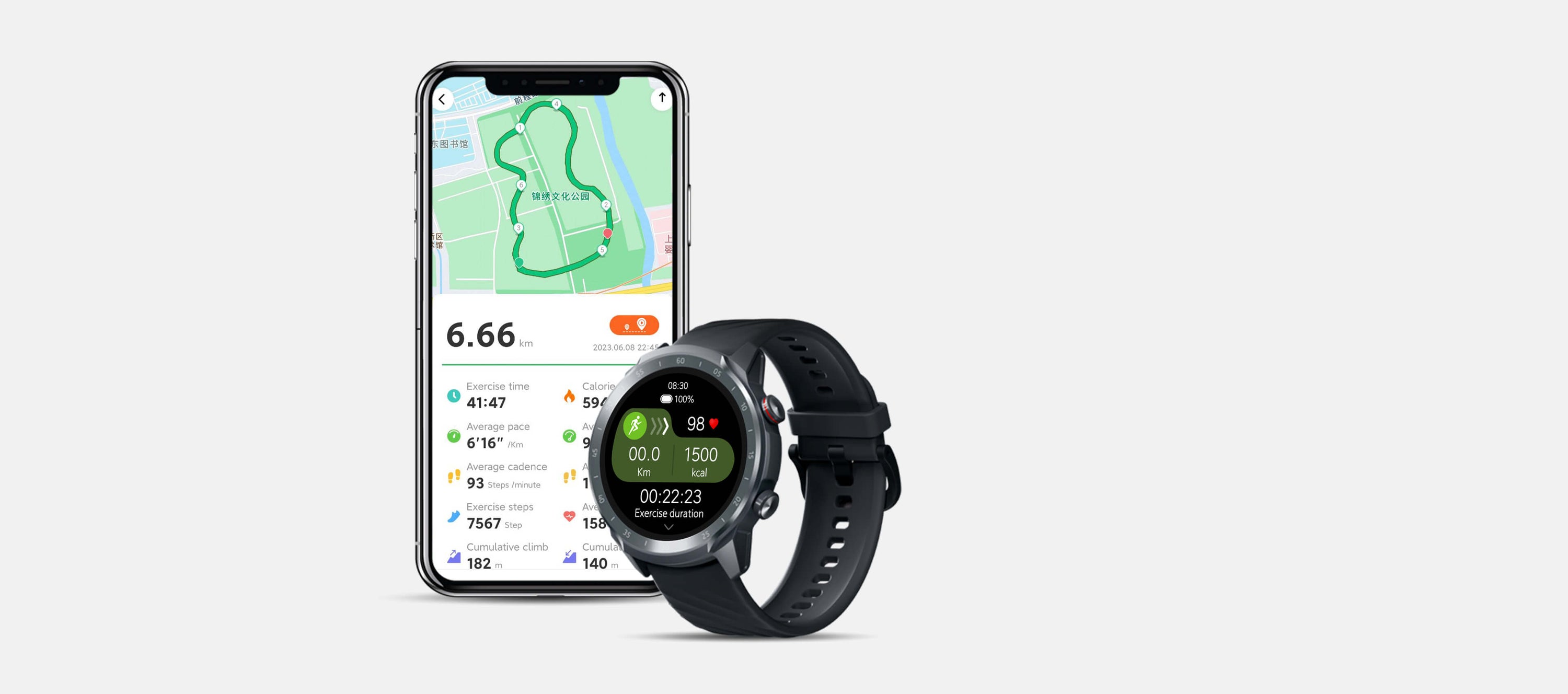A trajectory chart is generated for your exercise when it is paired with the phone’s GPS. Easily share data with friends.