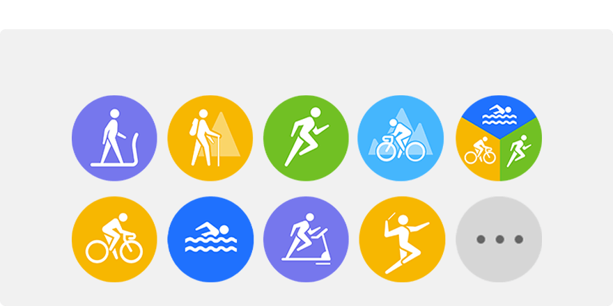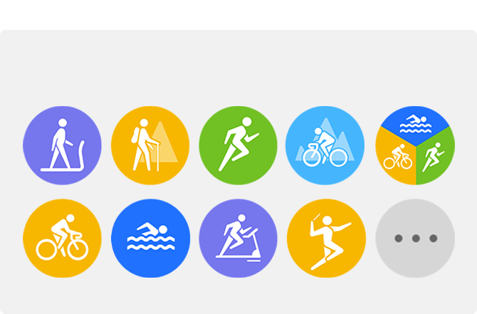 1. Popular sports: Outdoor Run,Indoor Run,Outdoor Walk,Pool Swim,Jump Rope,Elliptical,Row Indoor,Free Training.