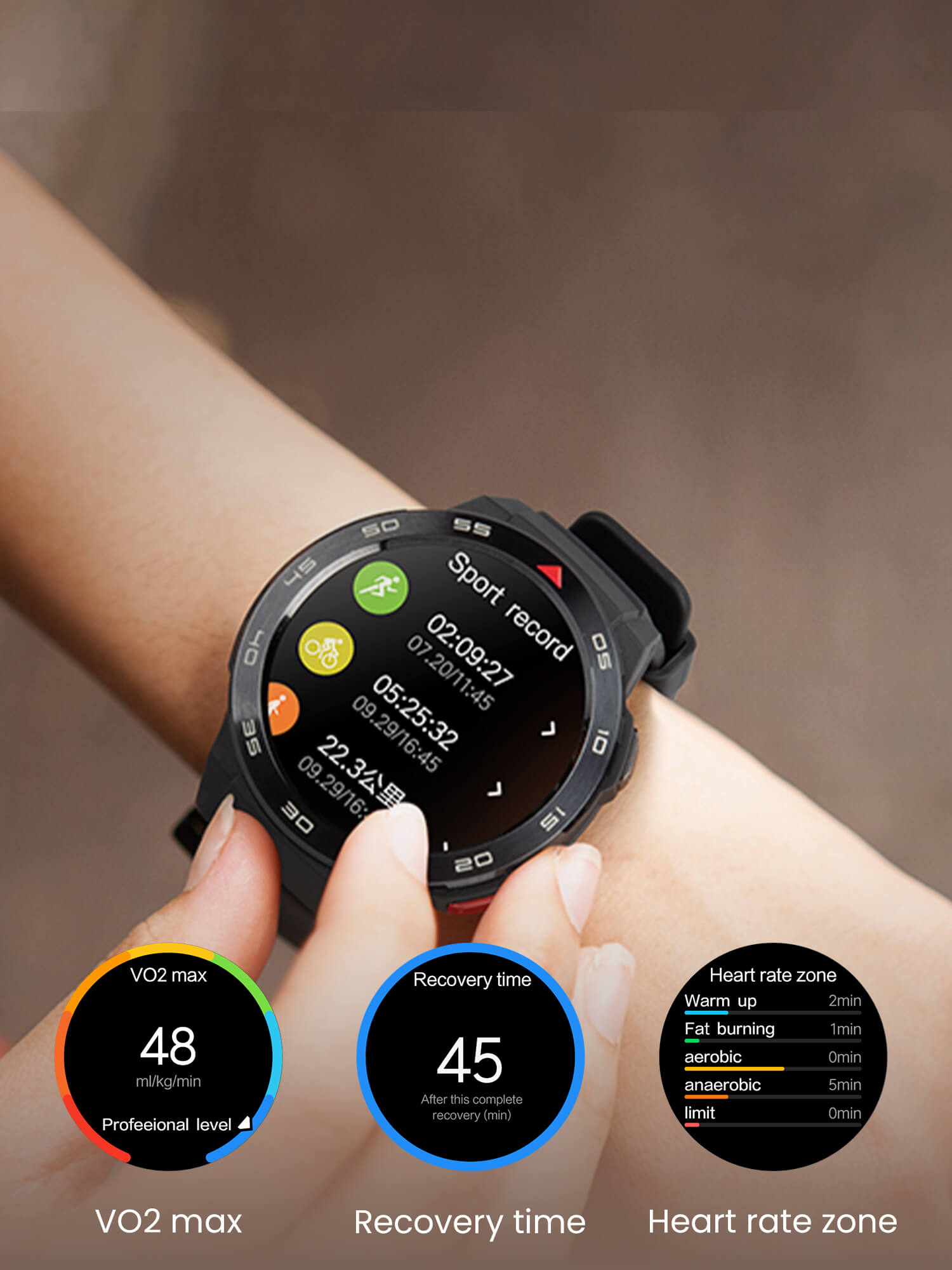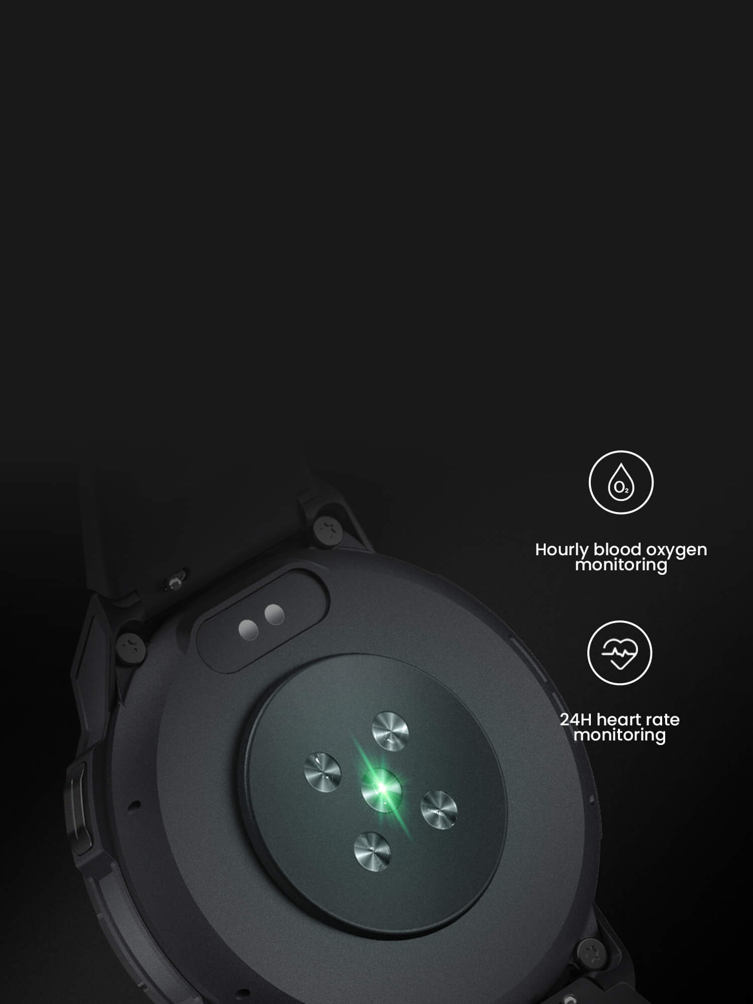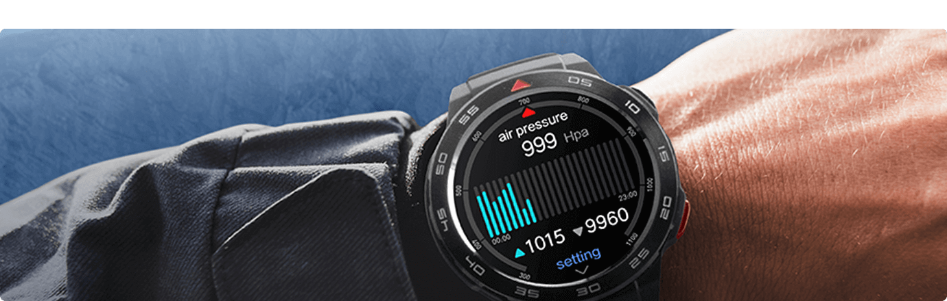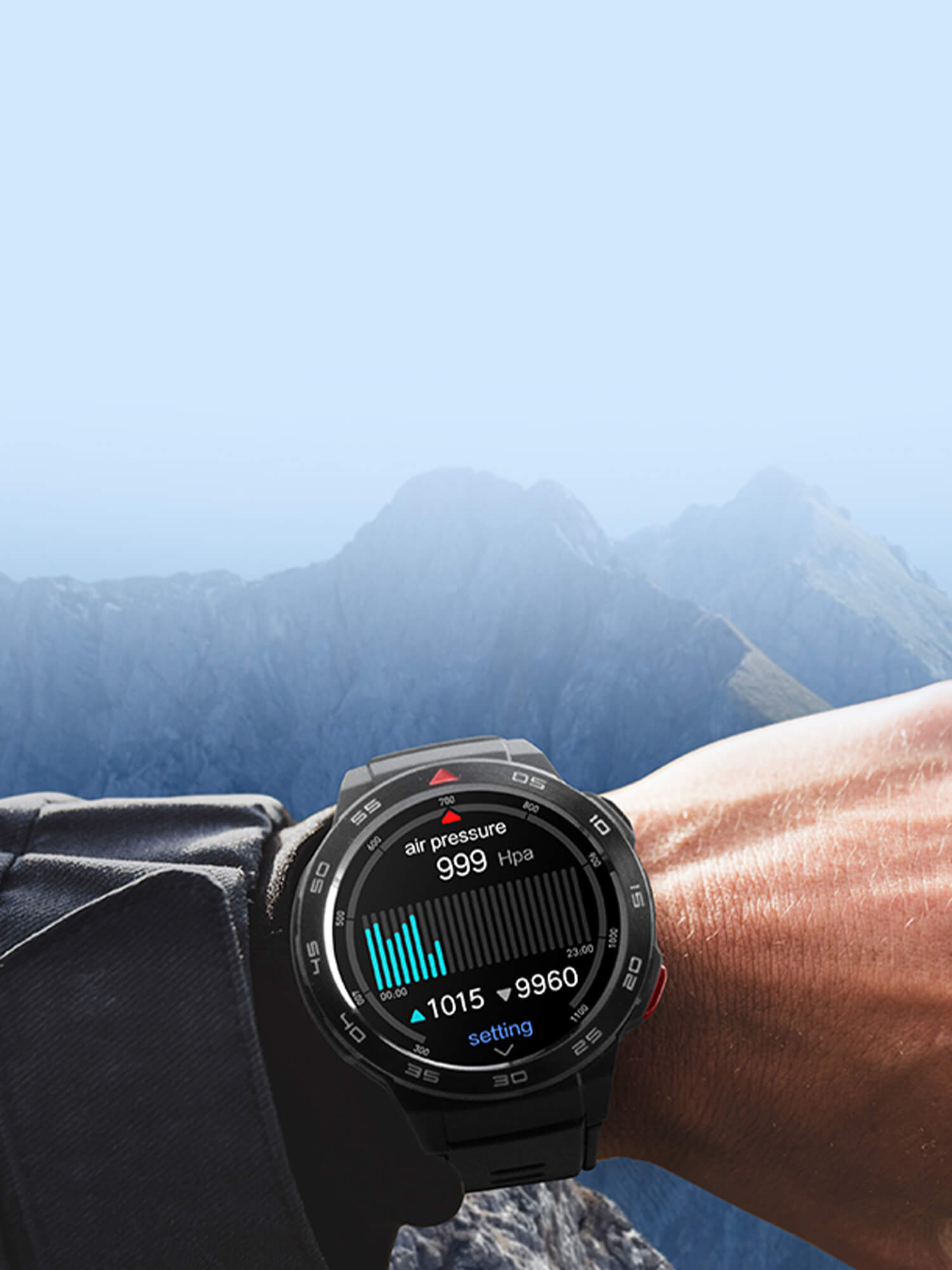 Étanchéité 5ATM, 105 modes sportifs avec capteurs à 9 axes. Mesurez l'altitude, la pression, et plus encore en levant le poignet.