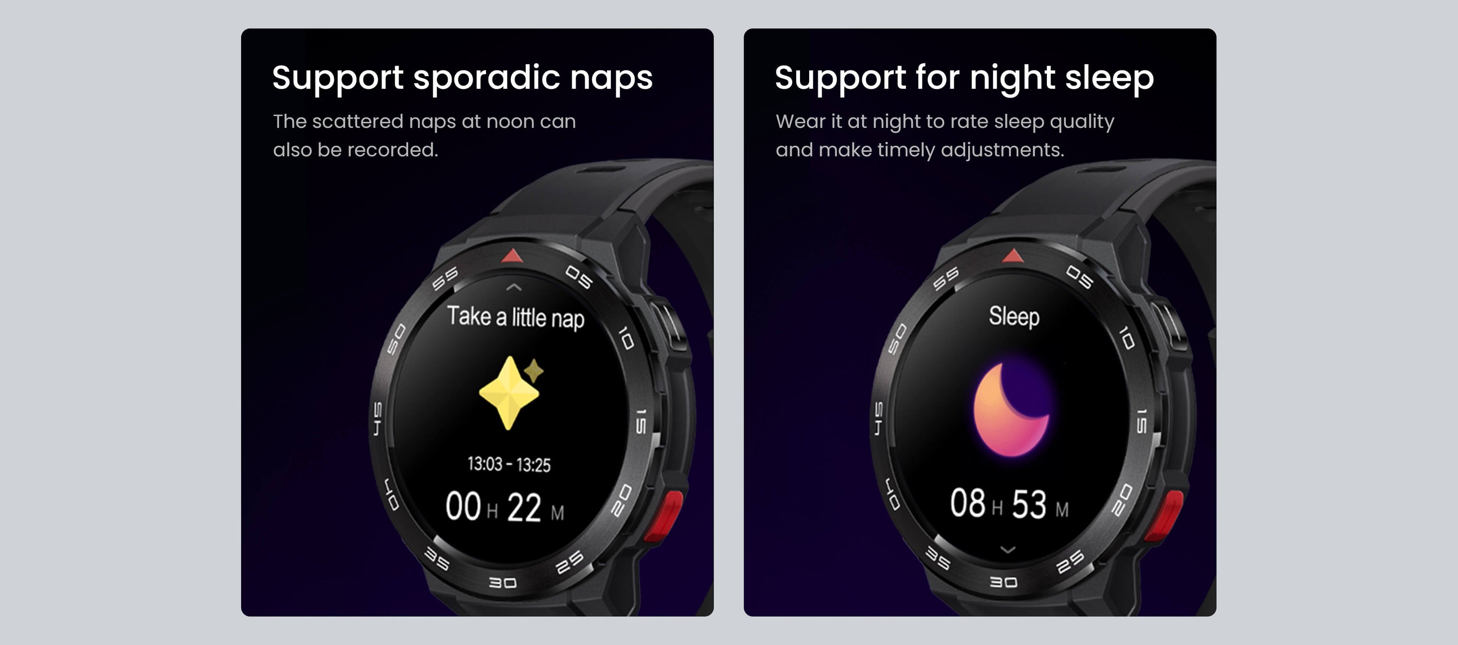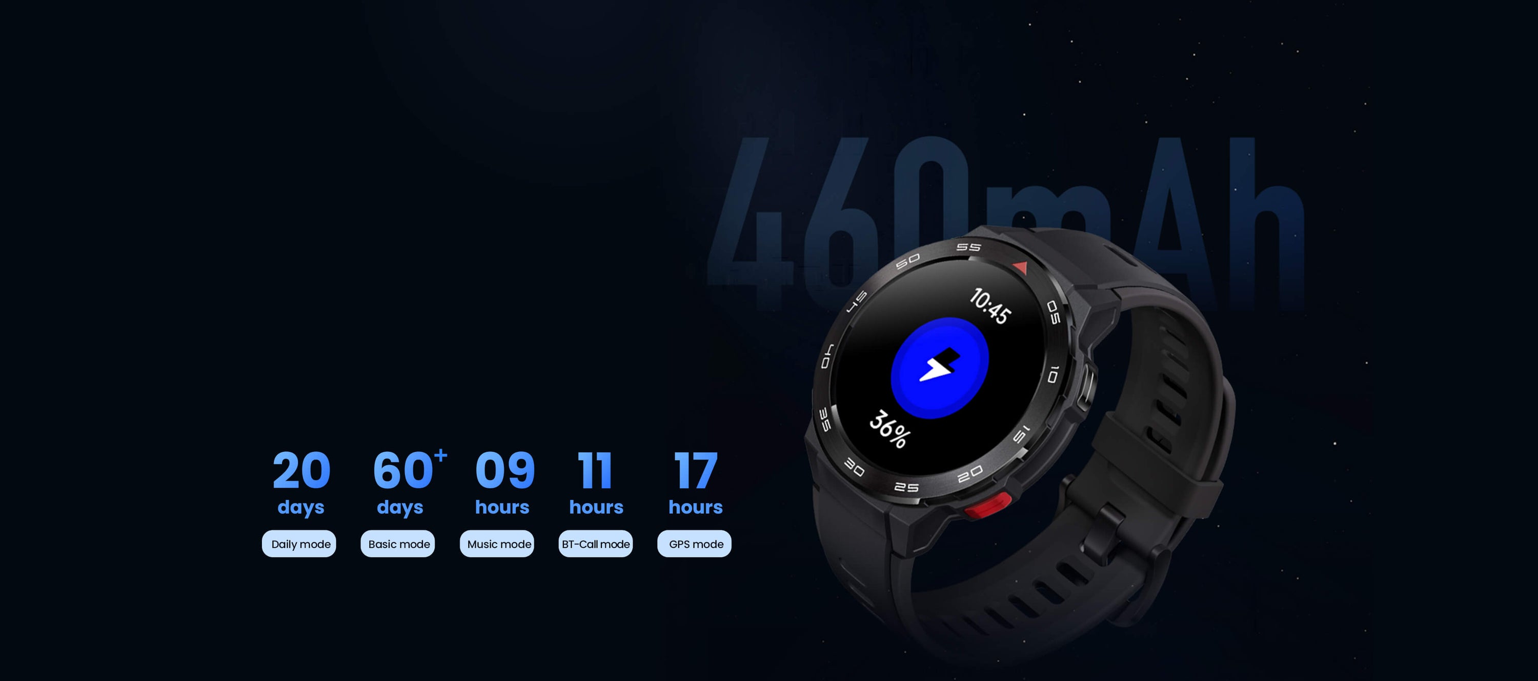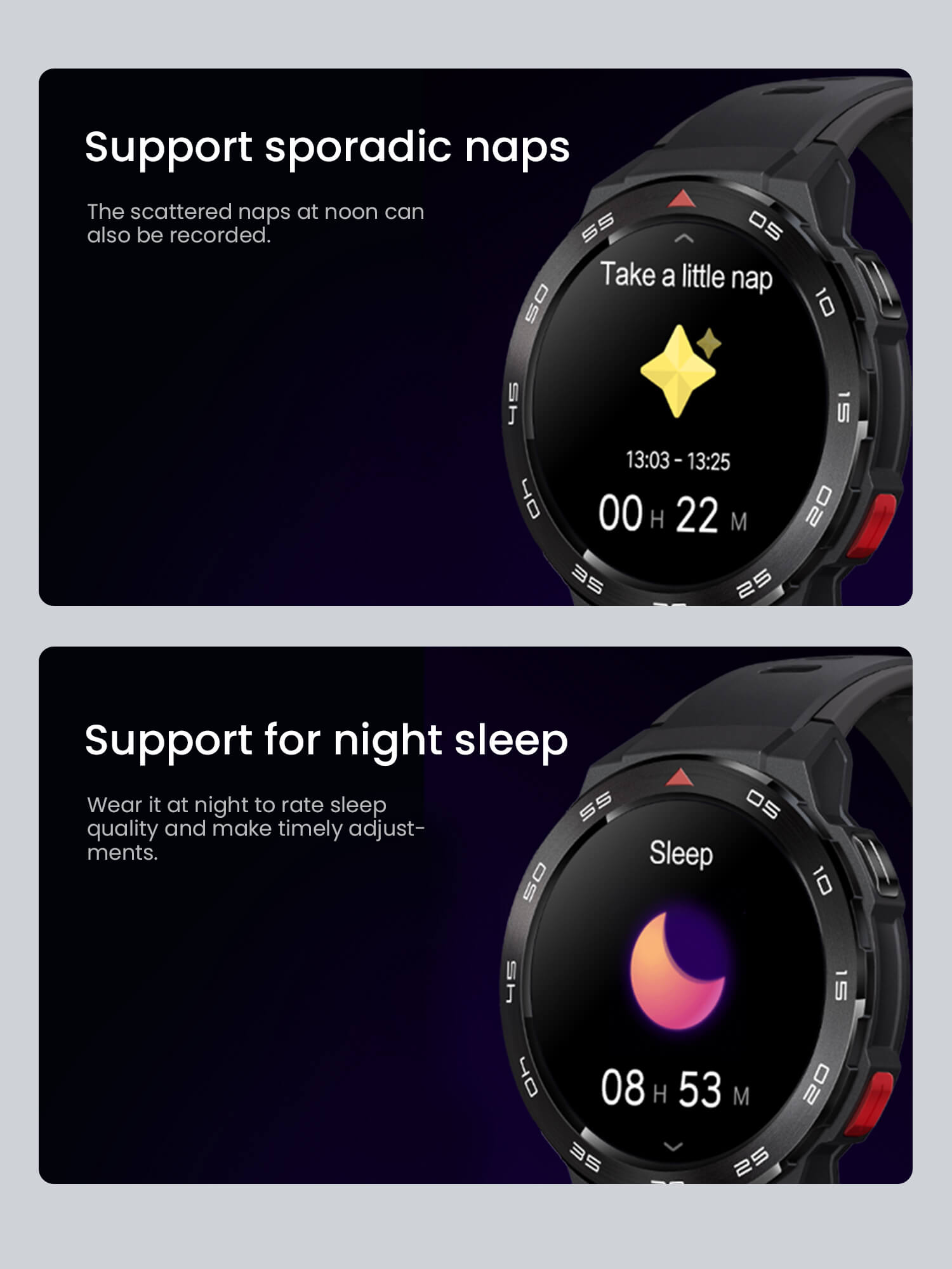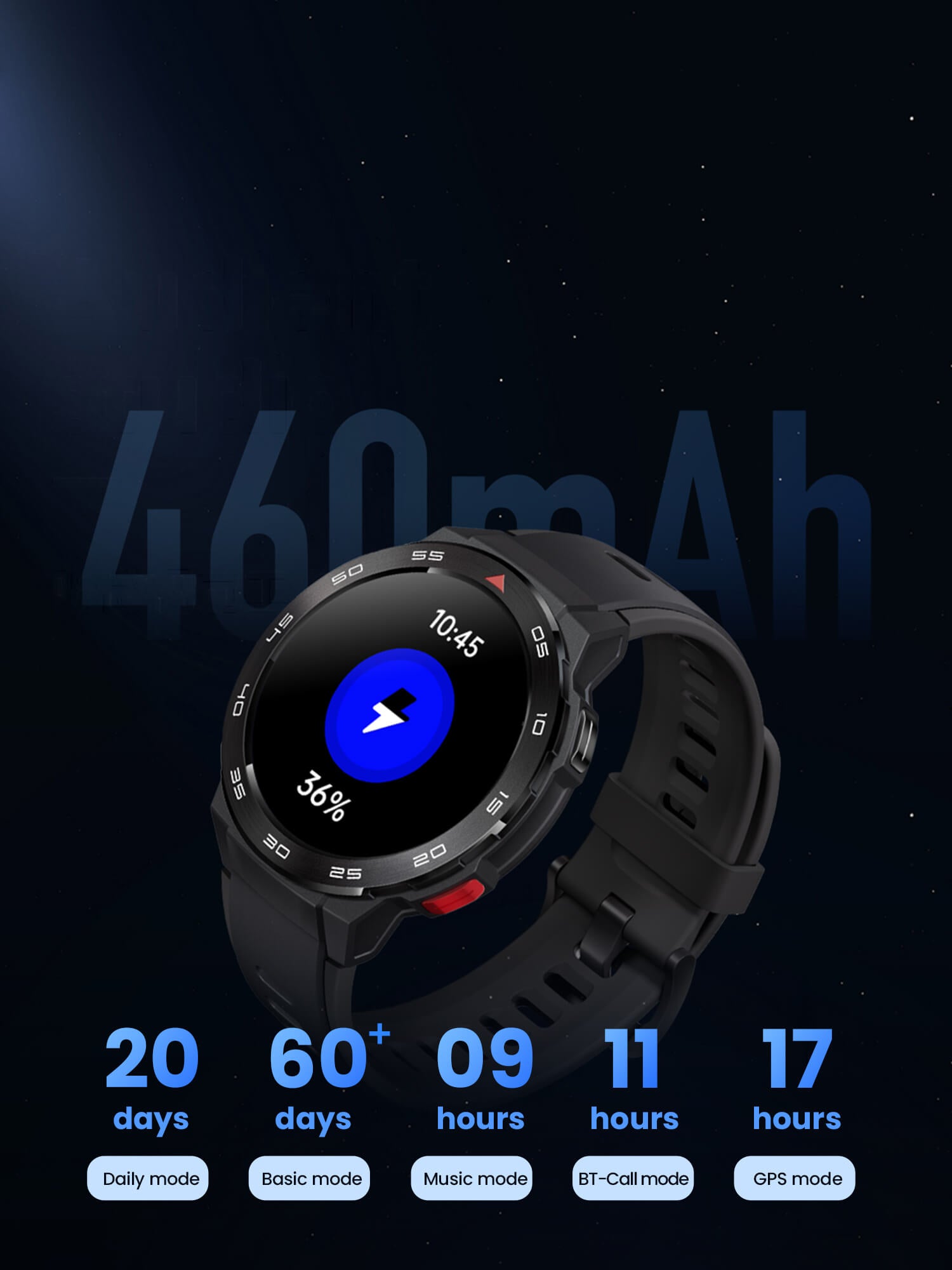 Étanchéité 5ATM, 105 modes sportifs avec capteurs à 9 axes. Mesurez l'altitude, la pression, et plus encore en levant le poignet.