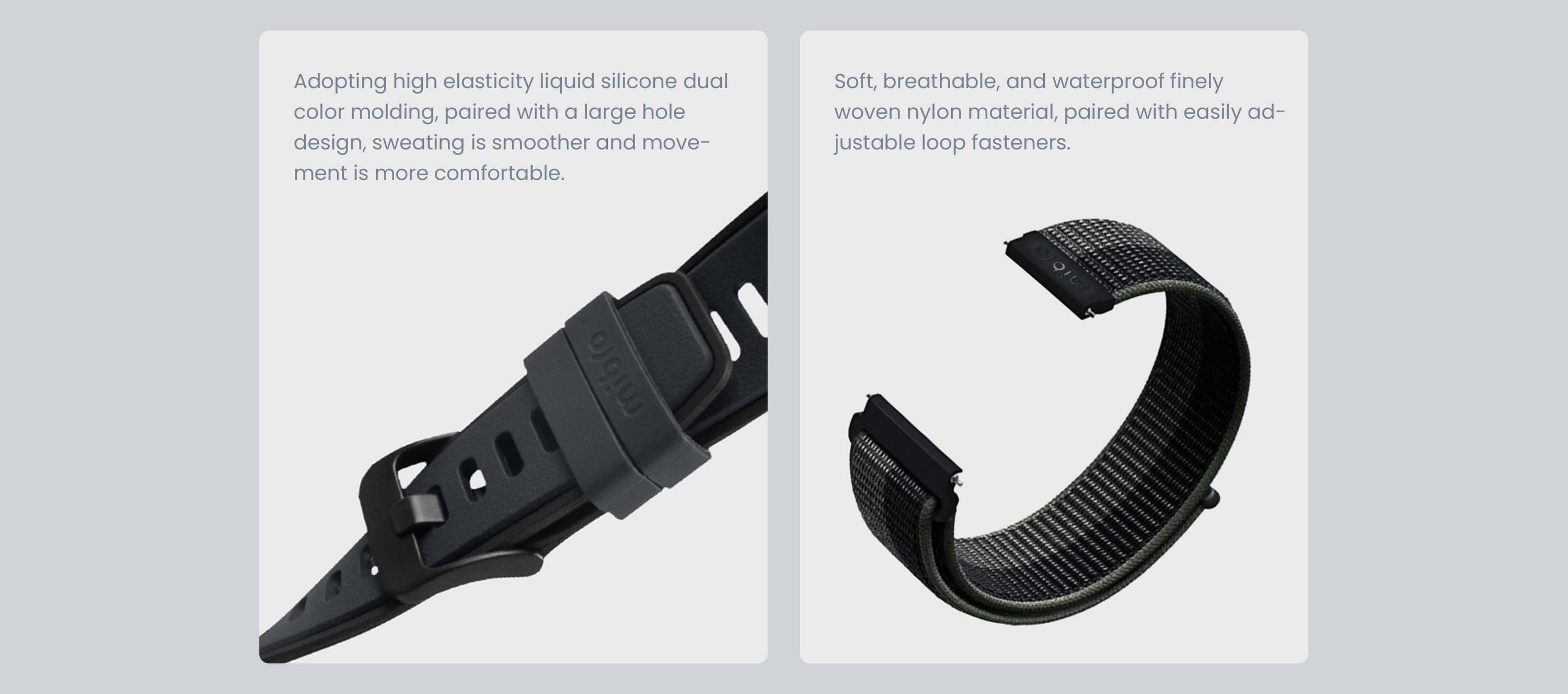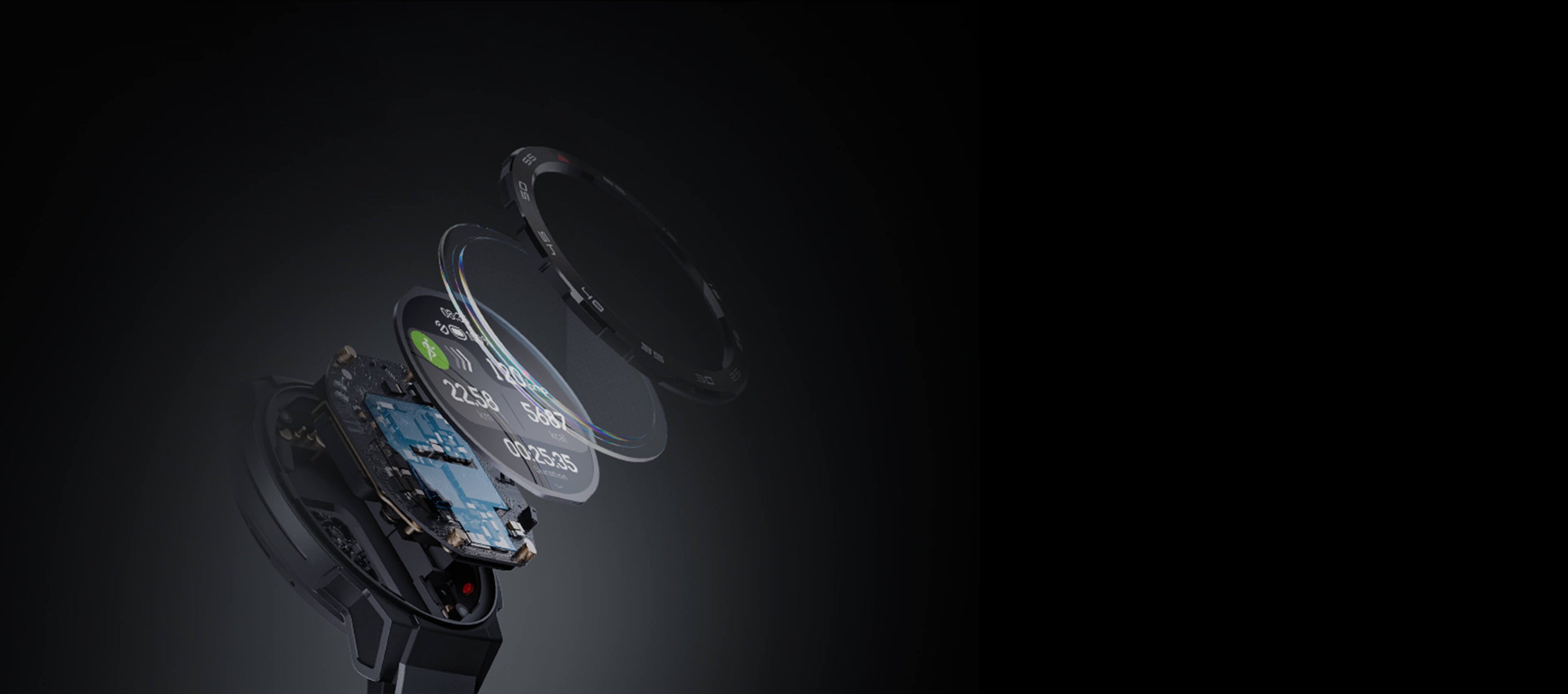 Écran AMOLED de 1,43" avec 461 PPI dans un boîtier en acier inoxydable 316L.