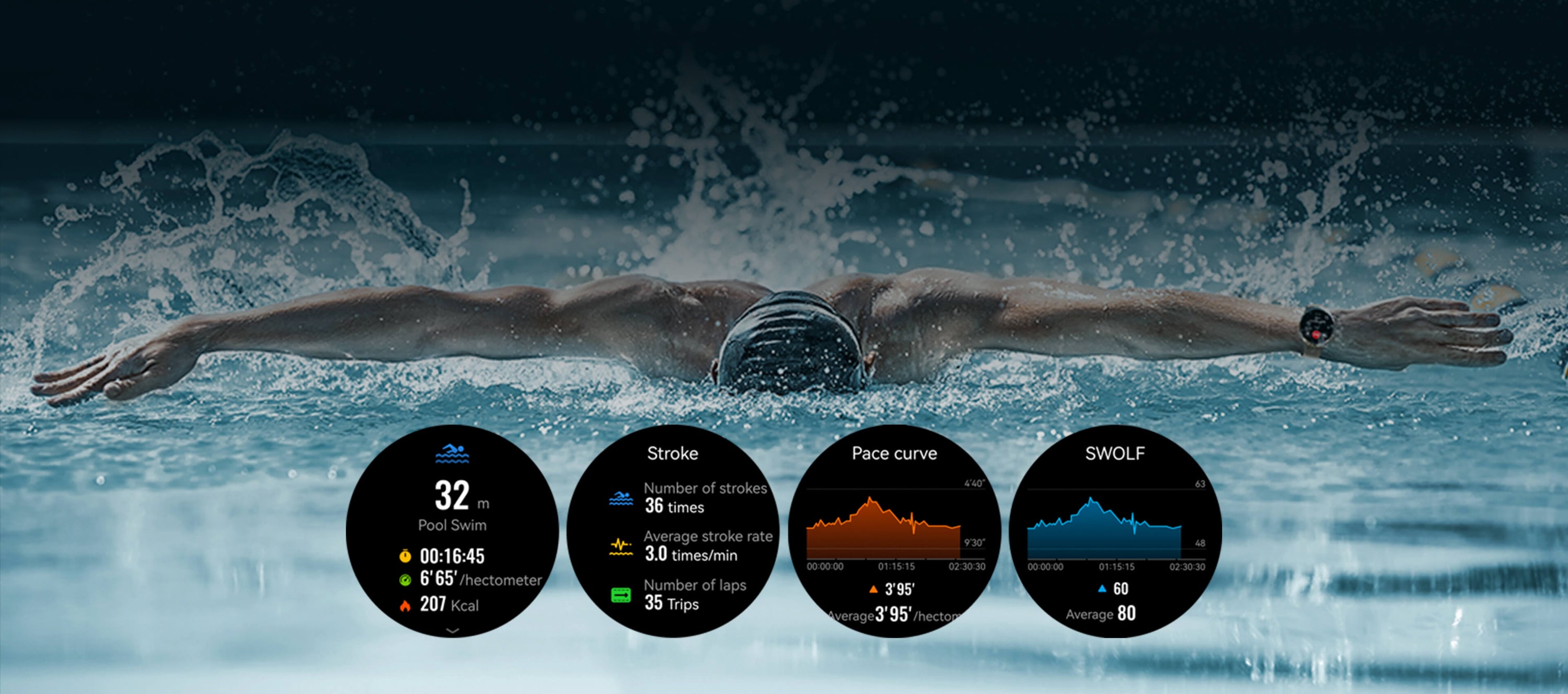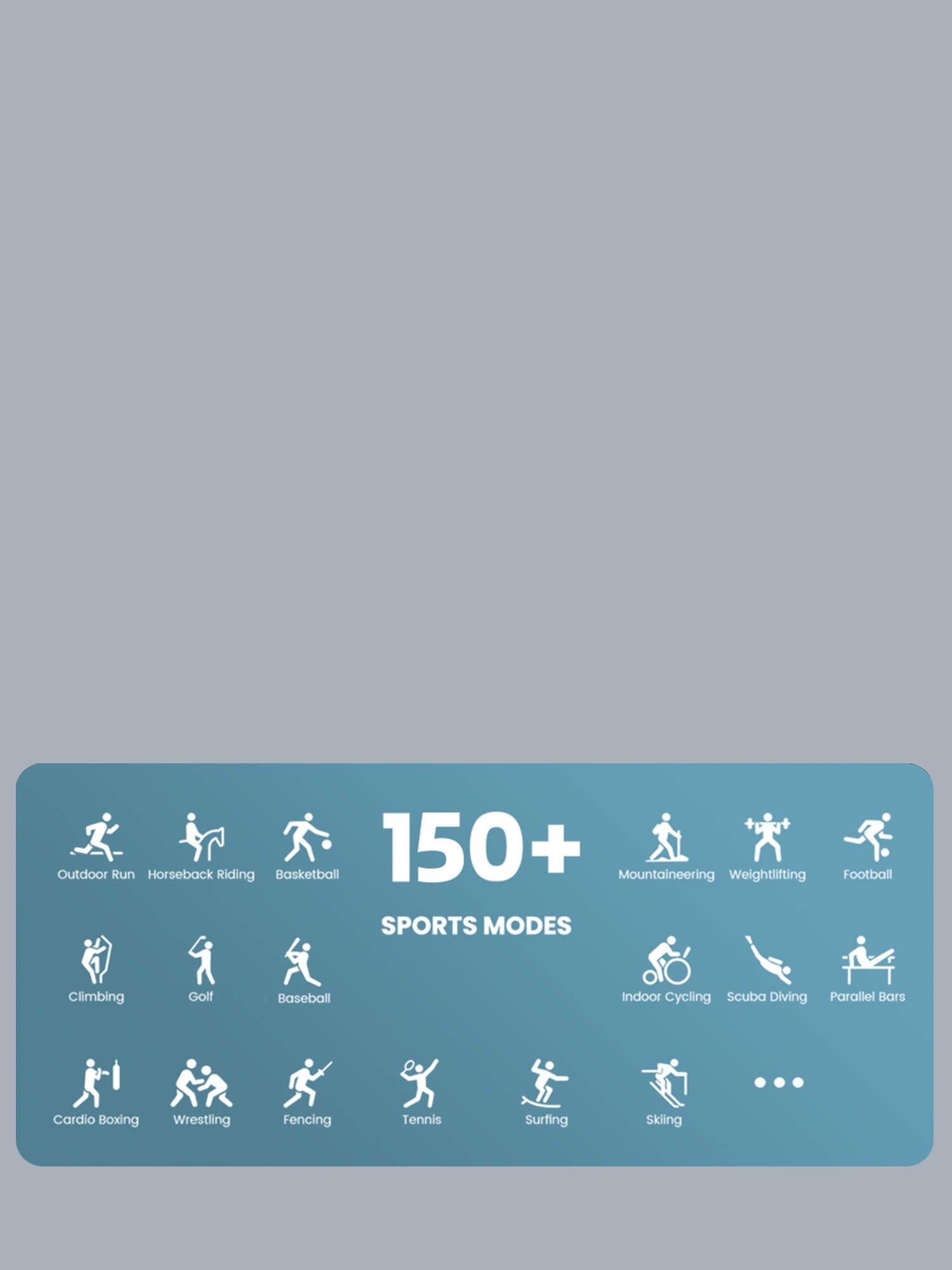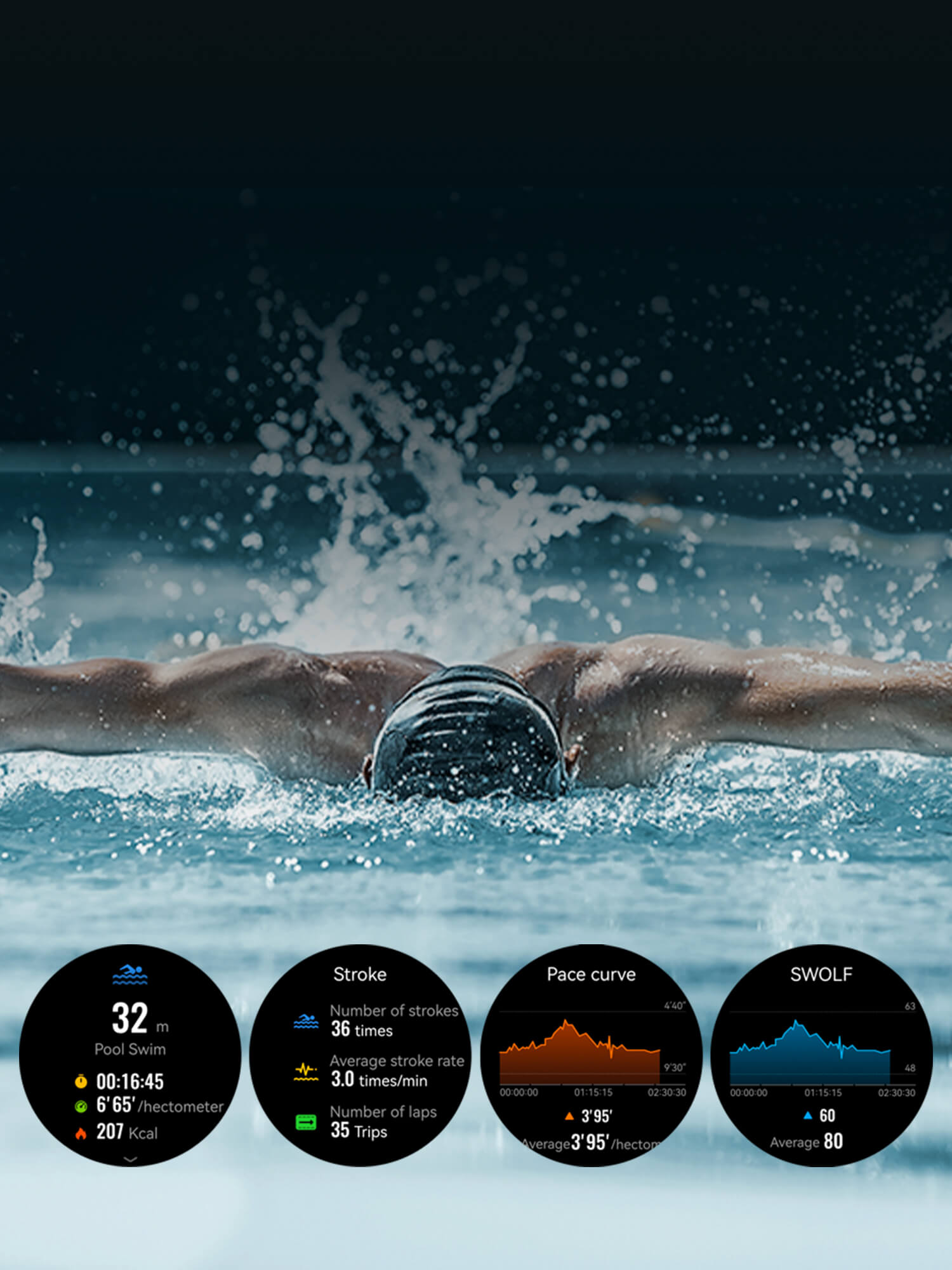 Plus de 150 modes sportifs avec 18 algorithmes spécialisés. Étanchéité 5ATM, capteurs à 10 axes pour un suivi précis des mouvements et un GPS en temps réel.