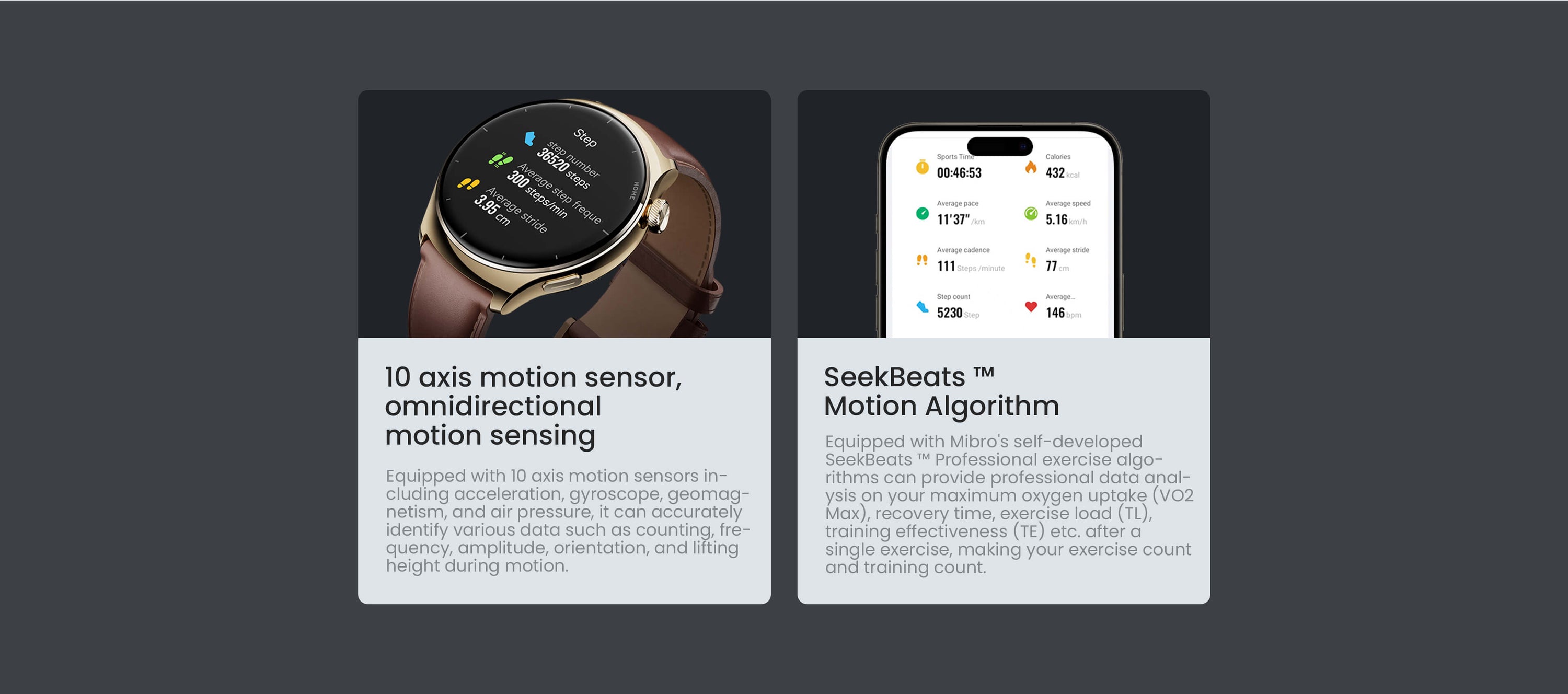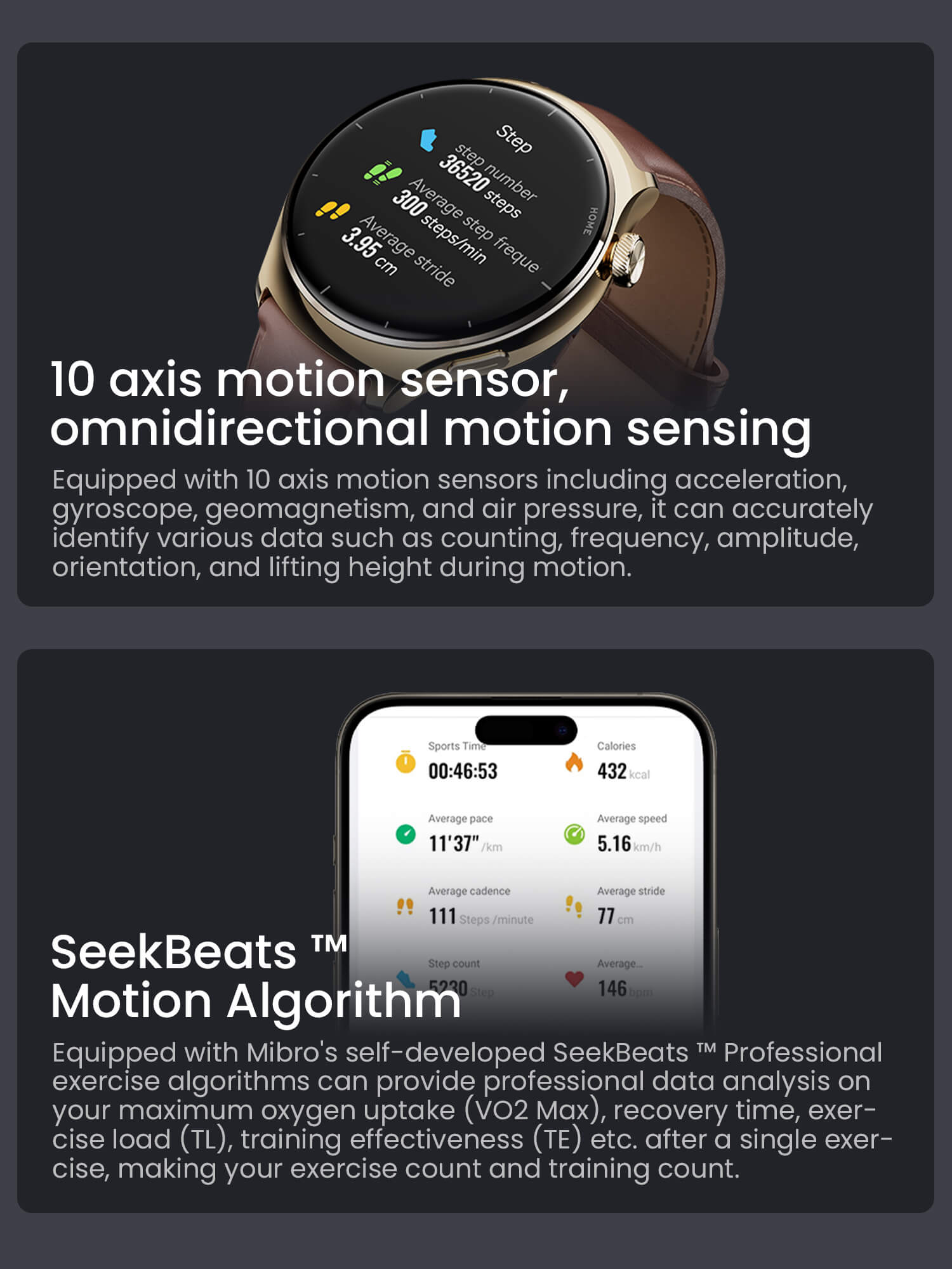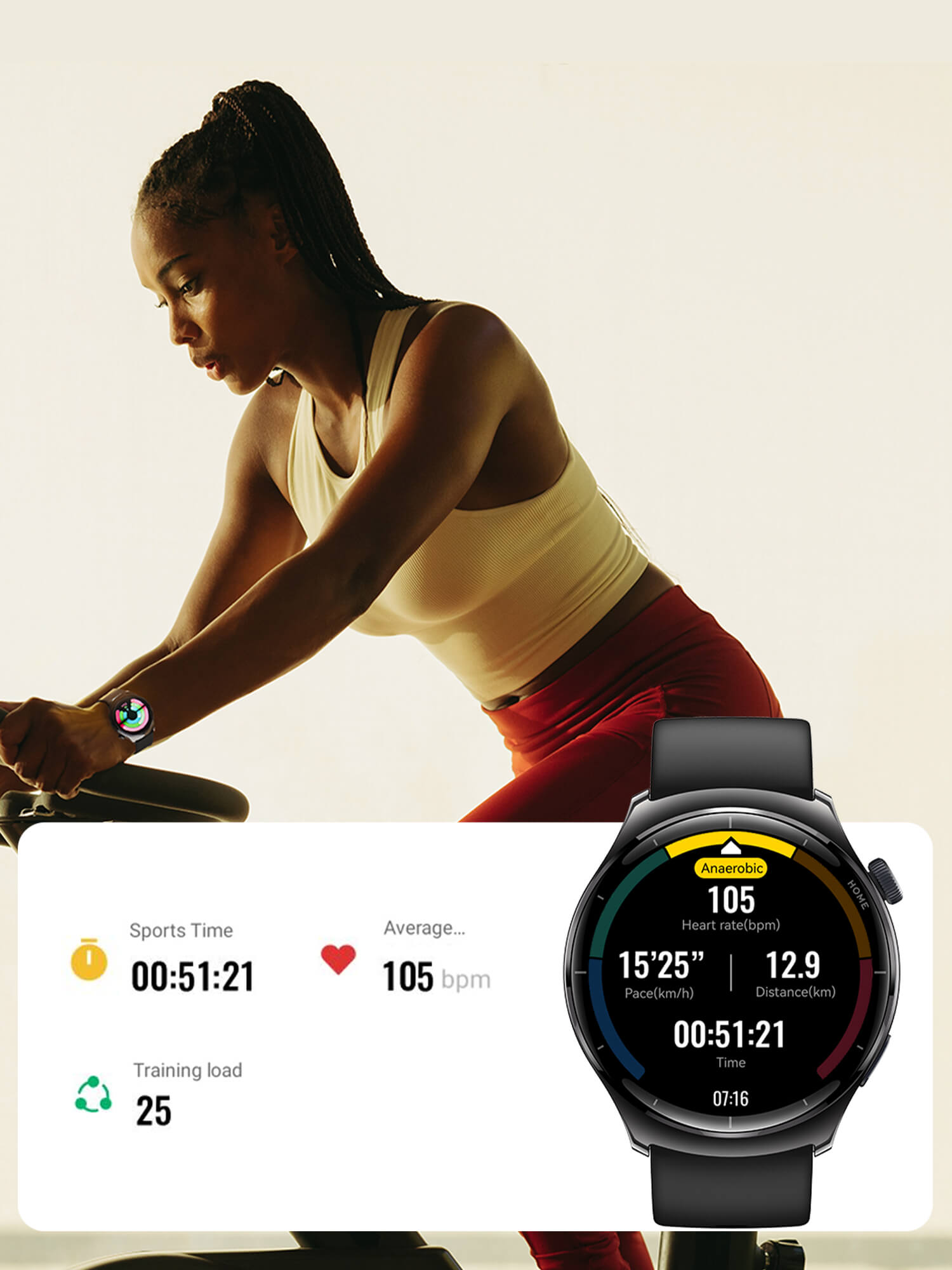 Plus de 150 modes sportifs avec 18 algorithmes spécialisés. Étanchéité 5ATM, capteurs à 10 axes pour un suivi précis des mouvements et un GPS en temps réel.