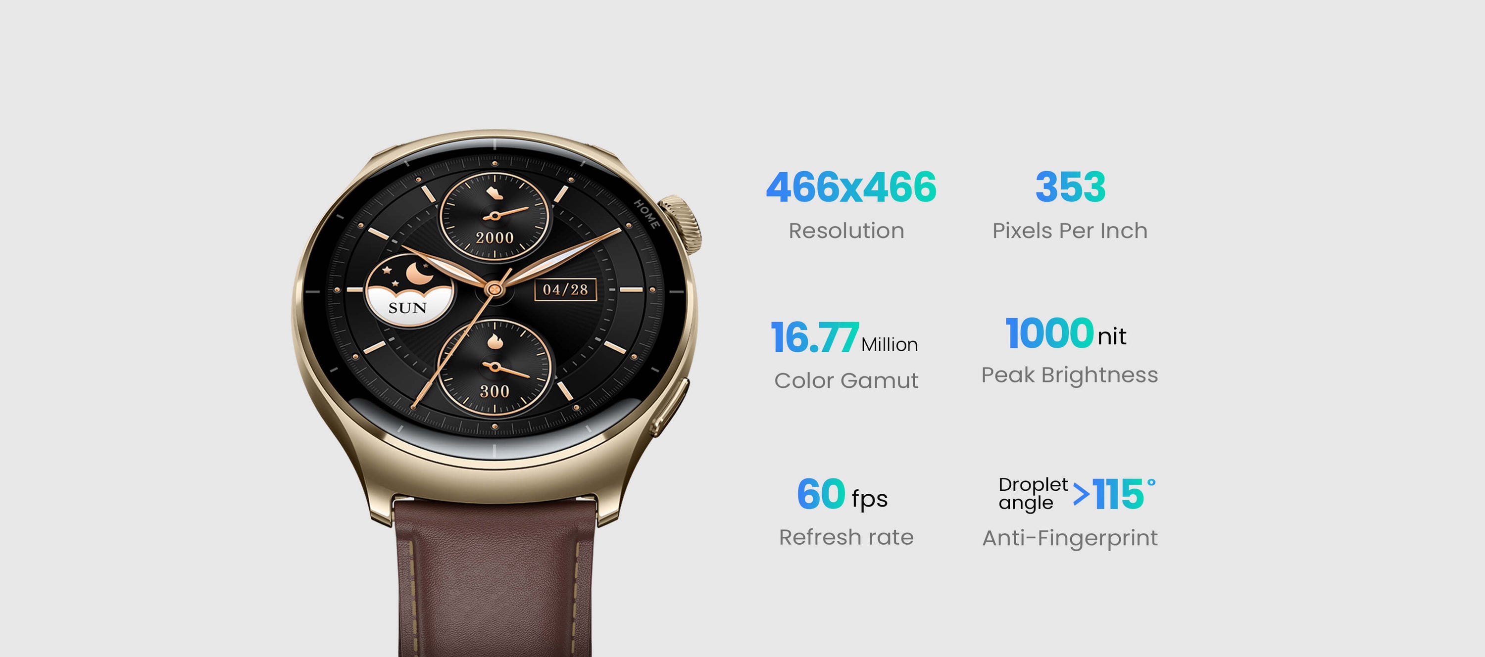 1.32"Amoled466*466,AOD,1000nits,PPI 353