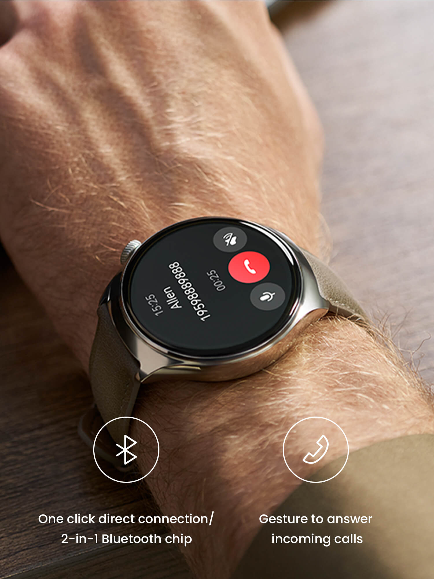Appels Bluetooth, notifications, outils de santé, localisateur de téléphone, NFC – tout intégré de manière fluide. Puce GNSS intégrée, prend en charge les systèmes de positionnement par satellite GPS/Beidou/GLONASS/Galileo/QZSS.